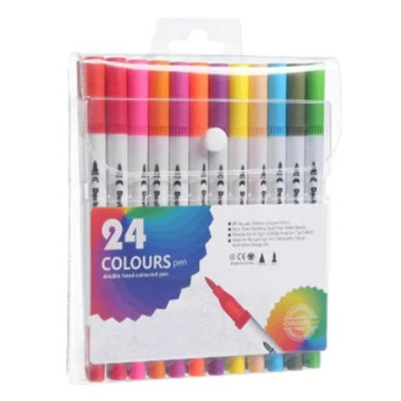 Conjunto 24 Canetinhas Ponta Dupla