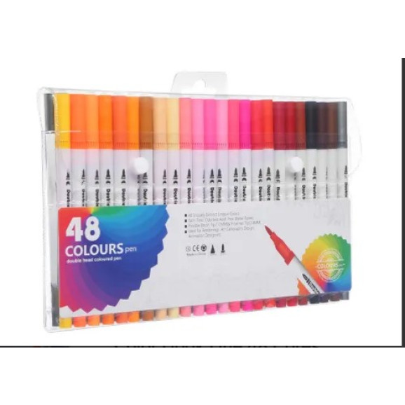 Kit Canetinhas Brush Pen 48 Cores Duas Pontas SCB-48 001-48Jogo de 48 Canetinhas Coloridas – Criatividade sem Limites!
