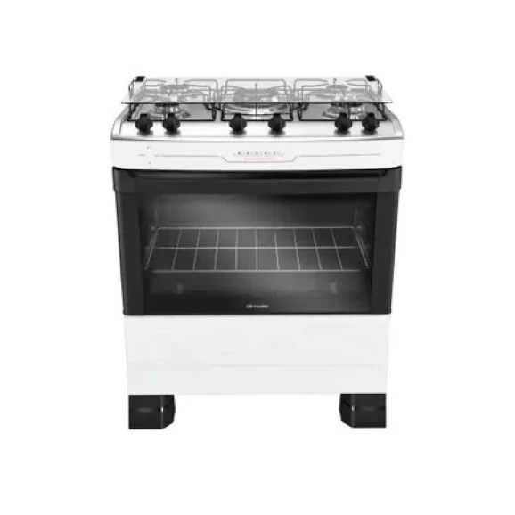 Fogão Mueller 5 Bocas Branco Mesa de Inox Tripla Chama Potência e Praticidade para sua Cozinha