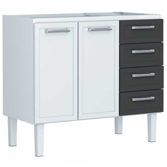 Lindo gabinete com design moderno e compacto, trazendo charme e sofisticação ao seu ambiente. O gabinete é produzido em Aço Eletrogalvanizado, protegido com pintura em pó eletrostática, garantindo maior durabilidade do seu produto. E para melhor design do produto, ele conta com 2 portas com detalhes clássico rebaixado, e quatro gavetas com ótimo espaço interno, ideal para organização dos seus pertences, louças e muito mais.