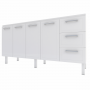 Material Aço Marca Cozimax Estilo Moderno Portas 04 em Aço Prateleiras 01 em Aço Número de Gavetas 3 Gavetas Tipo de Corrediça da Gaveta Roldana Puxador Em ABS Pés Em Polipropileno Regulagem de Altura Altura 91 cm Largura 1,92 m Profundidade 50 cm Itens Inclusos Manual de Montagem