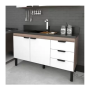 O Gabinete de Cozinha em Madeira Flamingo apresenta combinações da cor madeirada com portas em branco ou preto semi brilho. O Flamingo possui gavetas com corrediças telescópicas, exclusivos puxadores em aço eletrogalvanizado da Cozimax, e pés com regulagem de altura em polipropileno virgem na cor preta, que não ressecam e não quebram. Produtos vendidos separadamente.