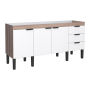 O Gabinete de Cozinha em Madeira Flamingo apresenta combinações da cor madeirada com portas em branco ou preto semi brilho. O Flamingo possui gavetas com corrediças telescópicas, exclusivos puxadores em aço eletrogalvanizado da Cozimax, e pés com regulagem de altura em polipropileno virgem na cor preta, que não ressecam e não quebram. Produtos vendidos separadamente.