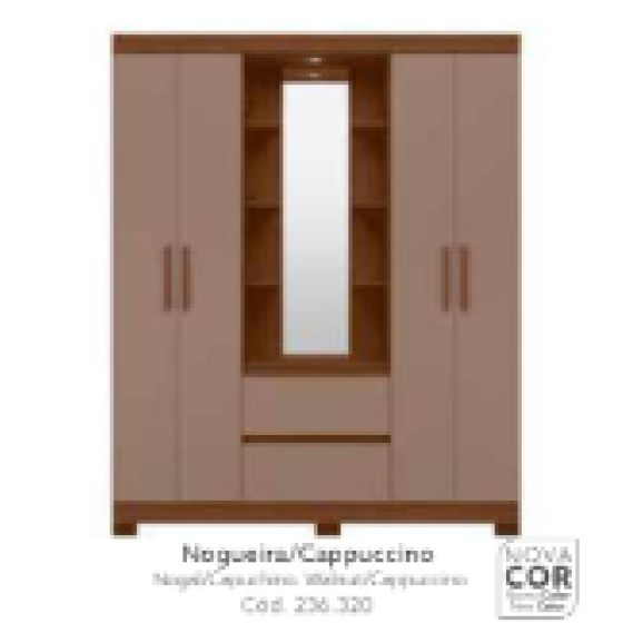 Guarda Roupa Solteiro Olimpia 4 Portas 2 Gavetas com Espelho – Albatroz Cinamomo/Off White