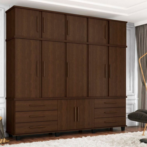 Apesar de simples e acompanhar manual de montagem, recomendamos que a mesma seja realizada por um profissional ou empresa especializada. Imagens meramente ilustrativas.Material MDF/MDP Marca Fabrimóveis Estilo Moderno Prateleiras . Número de Gavetas 6 Gavetas Tipo de Corrediça da Gaveta Telescópica Altura 2,43 m Largura 2,40 m Profundidade 54 cm Itens Inclusos Manual de Montagem