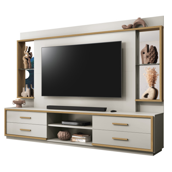 Descrição Home Leni com Gavetas e Prateleira Fendi Freijó Nobre EDN