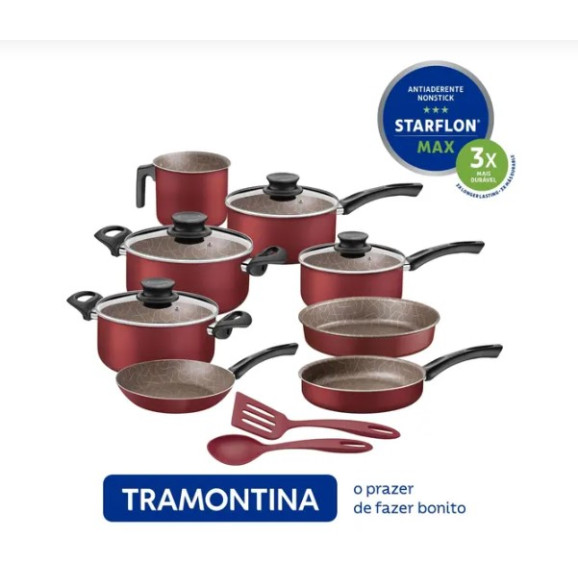 Descrição Jogo de panelas 10pcs paris vermelho - sortidos de utensilios para uso domesticoJogo de 10 Panelas em Alumínio com Revestimento em Antiaderente Starflon Max Paris Vermelho - Tramontina