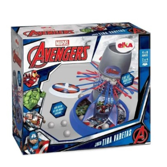 Jogo Tira Varetas Marvel Avengers 1215 - ElkaOs jogos estimulam o trabalho em equipe, raciocínio lógico, resolução de problemas, comunicação, pensamento abstrato e a resiliência. Pensando nisso a Elka trouxe o Jogo Tira Varetas dos super heróis da Marvel Avengers. Esse jogo de estratégia é pura diversão! Coloque as bolinhas de neve dentro da torre, gire a roleta e vá puxando as varetas. Mais cuidado, pois só quem deixar cair menos bolinhas, será o vencedor. Chame toda sua turma e organize campeonatos em que somente os mais corajosos e vencem.