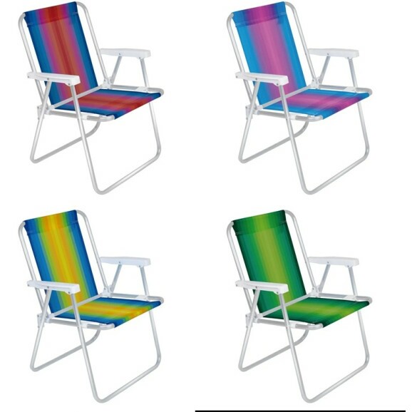 Kit 4 Cadeira de Praia Alta 1 Posição Alumínio Mor 2101 Dobrável Suporta 110kg
