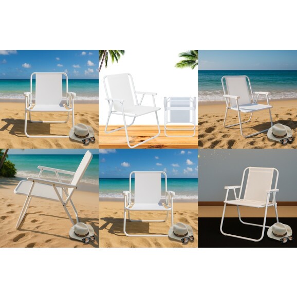 Kit 6 Cadeira De Praia Dobrável Alta Mor 2058 Aço Branca Suporta 110kg