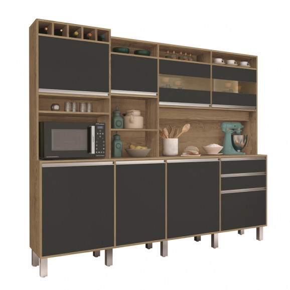 Kit Armario Cozinha Smart 08 Portas Cod. 6008 Freijo/Grafite Vitamov