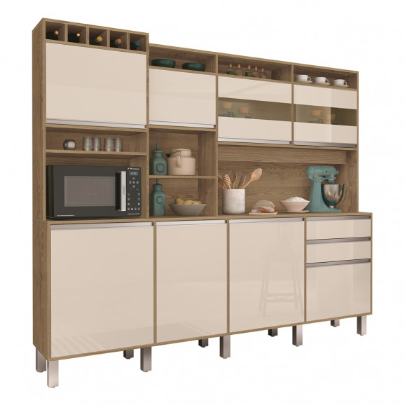 A Vita Móveis desenvolveu o Kit Armário de Cozinha Smart com 08 portas, 02 gavetas com corrediças telescópicas que permite a abertura sem enrosco, armário ideal para manter todos seus pertences organizados, além de nicho para objetos decorativos e adega para 05 garrafas, tudo o que precisa em um único produto, ideal para deixar seu ambiente organizado. O chame fica por conta do detalhe em Vidro reflecta, detalhe esse que vem seguindo as tendências de decoração de ambientes combinando com os mais diversos móveis. E para facilitar na hora da limpeza o armário Smart conta com pés alto.