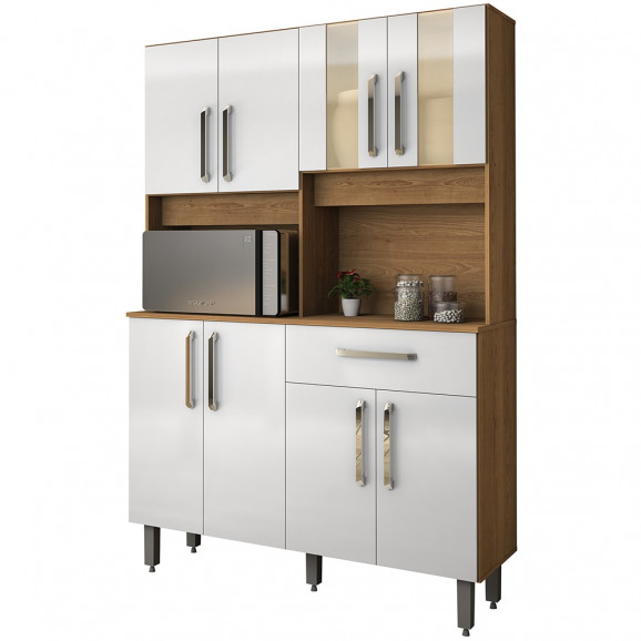 Kit Armario Cozinha Supreme 1214mm 8 Portas Freijo/Branco FORA DE LINHA