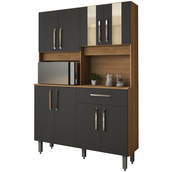 Kit Armario Cozinha Supreme 1214mm 8 Portas Freijo/Grafite Vitamov
