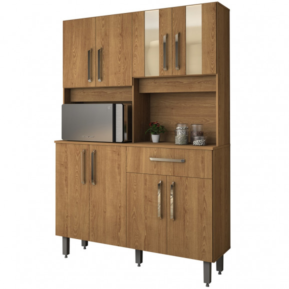 A Vita Móveis desenvolveu Kit Armario Cozinha Supreme 08 portas com 01 gaveta com corrediças metálicas, produto ideal para manter todos seus pertences organizados, além de nicho para objetos decorativos, ideal para deixar seu ambiente organizado. O chame fica por conta do detalhe em Vidro reflecta, detalhe esse que vem seguindo as tendências de decoração de ambientes combinando com os mais diversos móveis. E para facilitar na hora da limpeza a Cozinha Supreme conta com pés alto.