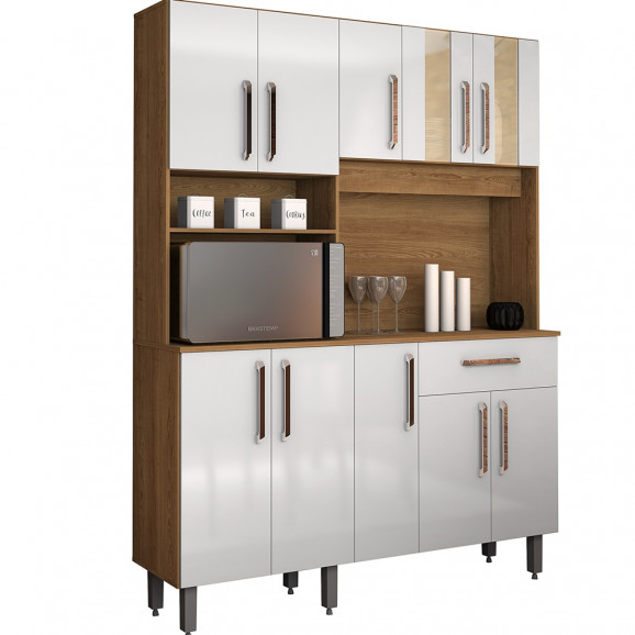 A Vita Móveis desenvolveu Kit Armario Cozinha Supreme 10 portas com 01 gaveta com corrediças metálicas, produto ideal para manter todos seus pertences organizados, além de nicho para objetos decorativos, ideal para deixar seu ambiente organizado. O chame fica por conta do detalhe em Vidro reflecta, detalhe esse que vem seguindo as tendências de decoração de ambientes combinando com os mais diversos móveis. E para facilitar na hora da limpeza a Cozinha Supreme conta com pés alto.
