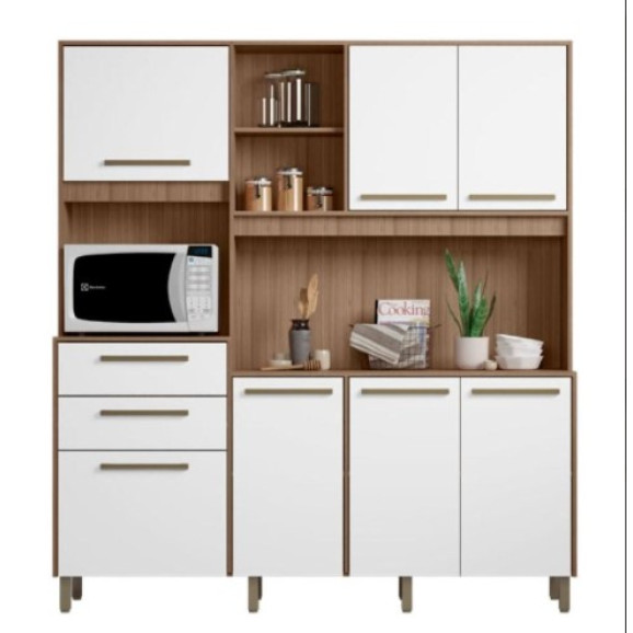 Descrição Esse Móvel é perfeito pra quem gosta de praticidade, elegância e beleza. Possui 7 portas para que você consiga organizar seus utensílios de cozinha.