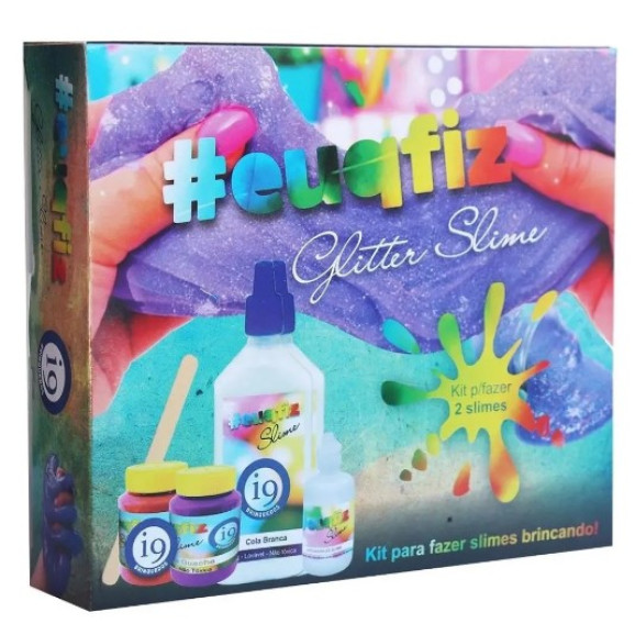 Descrição Kit para Fazer Slime Glitter Slime Euqfiz I9 Brinquedos BRI019302 tubos de cola com 0,90 gramas cada.