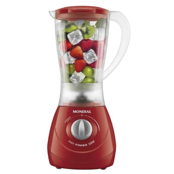 Descrição O liquidificador Mondial Easy Power 550W é um aliado na rotina na cozinha. São 550W de potência, capacidade total de 1,9 litros, além de 2 velocidades + Função Pulsar, que tritura até ingredientes mais duros. Você pode preparar torta de frango, bolo de milho, pão de queijo, massa de panqueca, queijadinha e muitas outras receitas com praticidade e rapidez. Saiba mais sobre o L-550: