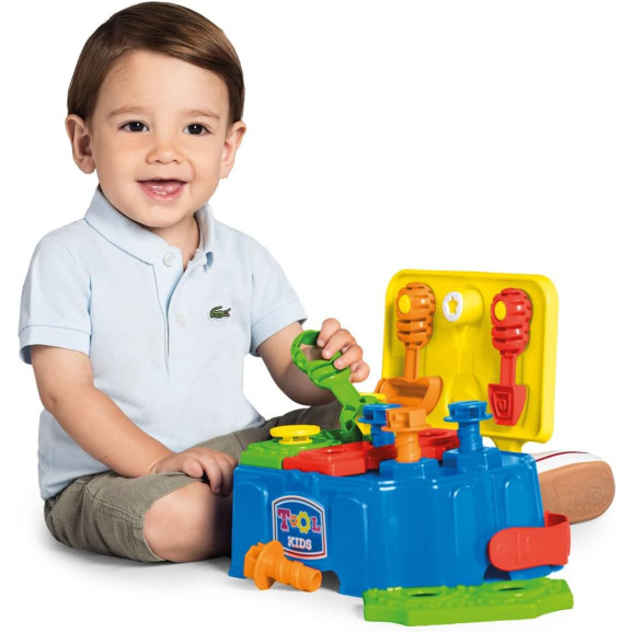 Maleta e mini bancada de ferramentas ! Para levar para todo lugar e montar onde quiser uma mini bancada de trabalho. Colorida e equipada com muitas ferramentas e acessórios. A brincadeira será montar e desmontar, parafusar e soltar parafusos e o que mais a imaginação quiser!