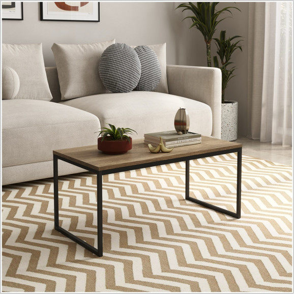 Descrição Mesa Centro Sala Pés ferro Tampo MDF Amadeirado Carmin
