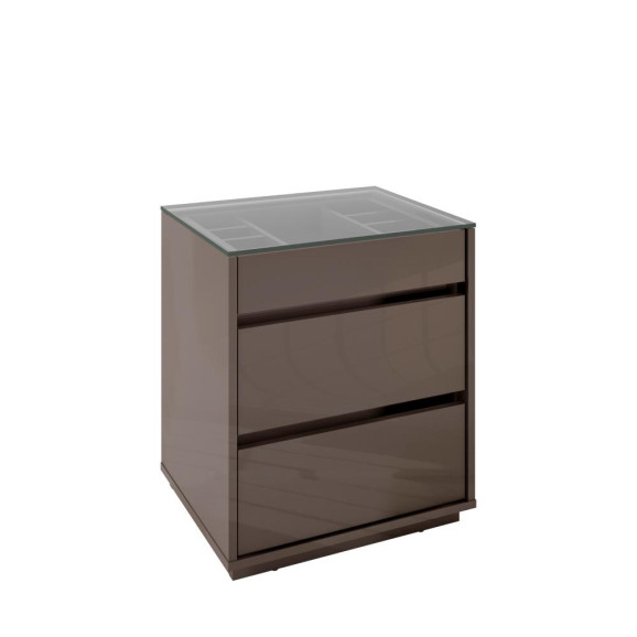 Mesa de Cabeceira Belize 3G Cinza Perola Tampo Vidro Casa D