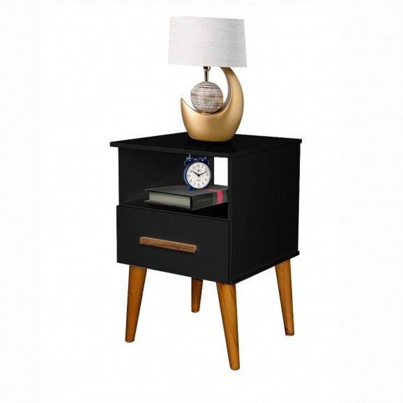 Mesa de Cabeceira Perola 1 Gaveta Preto Romar Móveis Quarto
