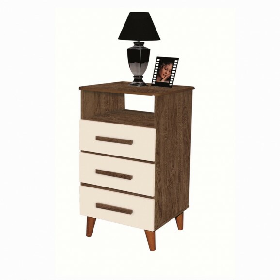 Mesa de Cabeceira Retrô Turquesa Canela/Off White Romar Móveis Quarto