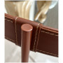 - Detalhes em Couro Sintético: Bordas revestidas em couro sintético marrom, com costuras duplas brancas que adicionam um toque de sofisticação e elegância.