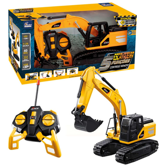 Descrição DESCRIÇÃO: ESCAVADEIRA COM CONTROLE REMOTO E BATERIA RECARREGÁVEL. IDEAL PARA BRINCADEIRAS CRIATIVAS. A PARTIR DE 4 ANOS.