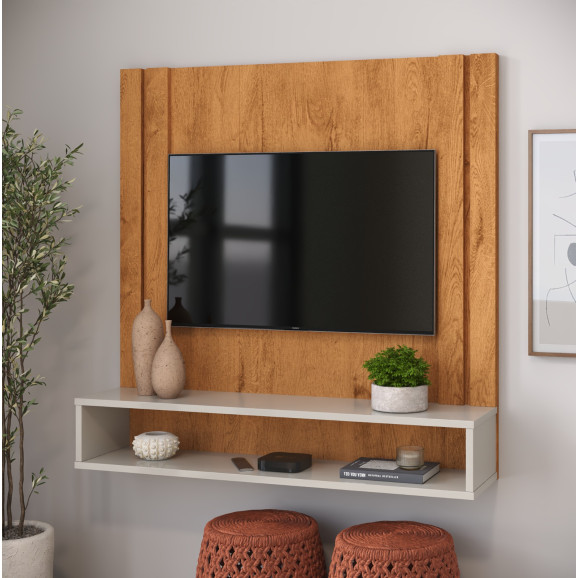 Com estrutura resistente e funcional, o painel conta com passa-fio no painel e no nicho, garantindo organização dos cabos e um visual sempre limpo. Além disso, é compacto e prático, perfeito para salas, quartos ou áreas menores.