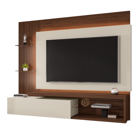 Material MDP Marca Móveis Bechara Formato Retangular Prateleiras . Ideal para Tvs até 65 Polegadas Altura 1,48 m Largura 1,80 m Profundidade 34 cm Itens Inclusos Manual de Montagem