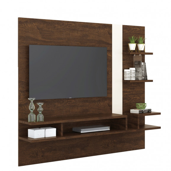 Descrição Painel Cross TV de 50 com Divisórias em Vidro Canela/Off White Lukaliam Sala de Estar