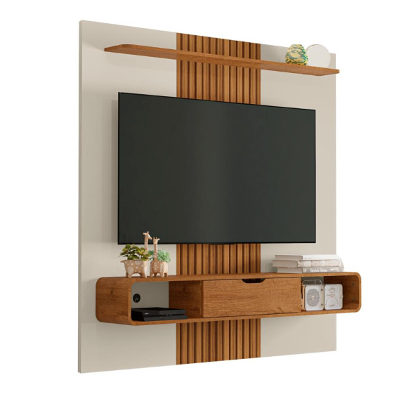 Com uma linha de produtos arrojados, A Móveis Bechara trás produções com alto nível de modernidade como o Painel Lisboa, que é um destaque no mercado e veio para complementar sua sala! Produzido em MDP, é um painel amplo. Contemporâneo, seu design tem linhas retas com cantos arredondados. Conta com 2 nichos, 1 porta com dobradiça metálica e prateleira superior com cantos curvos para garantir beleza e uma melhor distribuição de objetos de decoração ou mesmo aparelhos eletrônicos conforme seu gosto. Suporta TVs de até 65 polegadas.