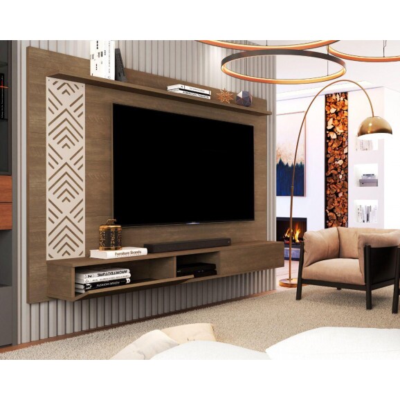 Descrição Painel TV Roma Cambel Castanho/Off-White/Castanho