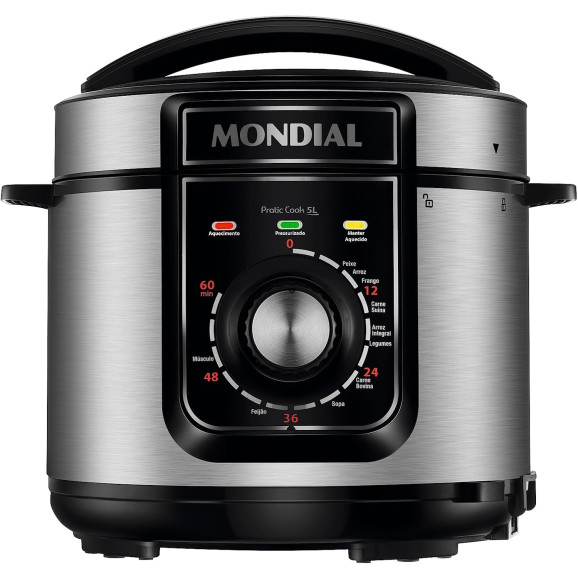Panela de Pressão Elétrica 5L, Mondial, Preto/Inox, 900W, 110V - PE-48-5L-I