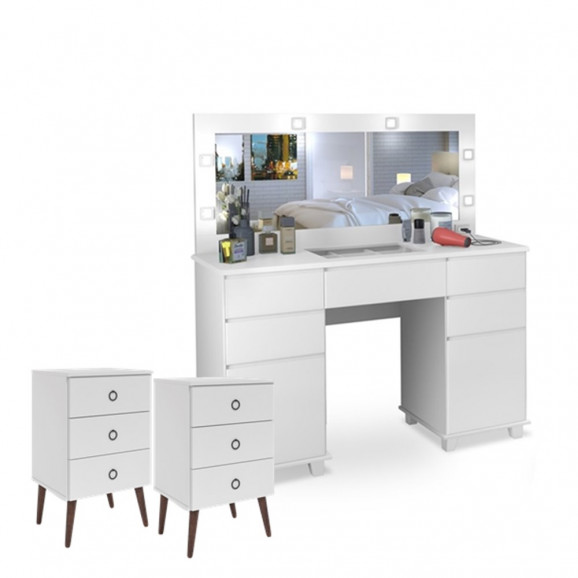 Descrição Penteadeira Camarim Clean + Mesa de Cabeceira Beatriz - Ofertamo