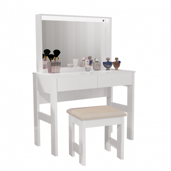 A JB Bechara vem trazendo uma nova linha de produtos com mais qualidade e conforto para a sua casa, dentre eles a Penteadeira 7900 com design moderno e sofisticado agregando charme e beleza ao ambiente. Ela conta com estrutura em MDP, garantindo maior durabilidade. Ela contém duas gavetas com amplo espaço interno, ideal para organizar maquiagens e joias. Penteadeira acompanha espelho, banqueta almofadada e Iluminação em LED, tudo para embelezar ainda mais o produto.