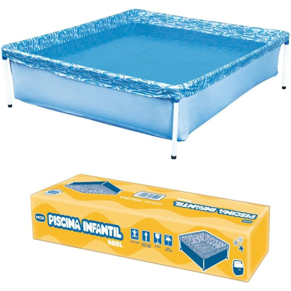 Descrição Os pequenos vão adorar essa piscina! Com capacidade para 400 litros, ela é prática de ser transportada e montada em qualquer lugar, excelente para quem tem pouco espaço em casa. Fabricada com lona resistente com estampa em ondas e estrutura firme, proporciona segurança e garante momentos de alegria nos dias de calor.Constituída de estrutura em aço com acabamento em pintura epóxi à pó branca, a piscina 400 litros da Mor possui peças plásticas em polipropileno com sistema de encaixe, que facilitam a montagem. Atenção! A lona em PVC é leve e resistente, mas a piscina não deve ser transportada com água em seu interior, por isso conta com prática válvula de deságue. Proteja sempre o piso para evitar objetos pontiagudos que possam perfurar o material. Agora é só curtir os melhores momentos do verão ao lado da criançada! Atenção! Nunca deixe crianças sozinhas perto da água sem supervisão de um adulto.