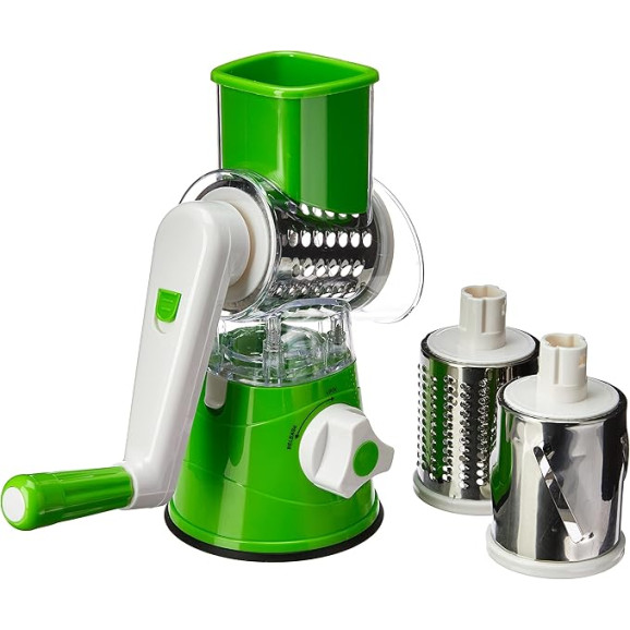 simples mecanismo de manivela gira tambor e cria perfeitamente ralado ingredientes. para operar e fácil de limpar.