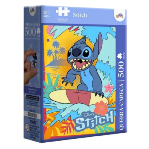 O Quebra-Cabeça Stitch 500 Peças da Toyster traz o adorável personagem Stitch para um desafio divertido. Com padrão internacional de qualidade e encaixe suave, este quebra-cabeça estimula o raciocínio lógico, a concentração e a percepção visual. É perfeito para fãs do personagem e para quem busca um passatempo relaxante e desafiador.Imagem montada (aproximadamente) aproximadamente 47,8 x 34,8 cm