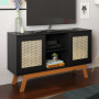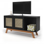 - Prateleira interna; - Estrutura em MDF de 15 mm; - Pés em madeira pinus; - Para TV de até 55"; - Portas com rattan sintético.Dimensões: