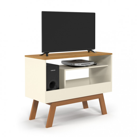 Rack Compacto Arthur com Pés em Madeira Off White Ofertamo Móveis