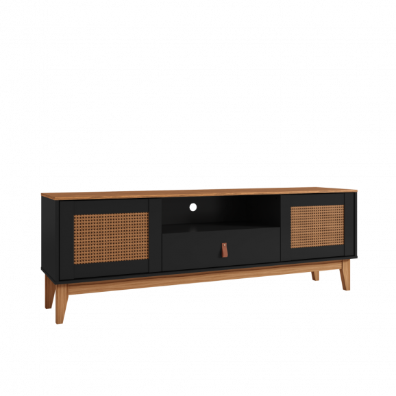 Descrição Rack Esmeralda 2 Portas Preto Noce Casa D Móveis Sala