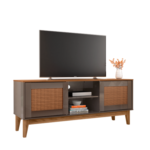 Rack Safira 2 Portas Cinza Perola Cedro Casa D Móveis Sala