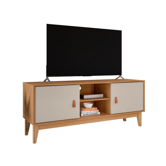 Rack Safira Plus 1,35m Cedro/Off White Casa D Móveis Sala