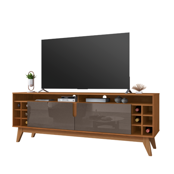 Rack Wine 1,35 m Cedro Cedro Cinza Perola Casa D Móveis Sala