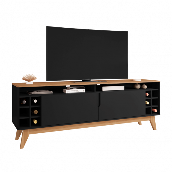 Descrição Rack Wine 1,60 m Preto Noce Casa D Móveis Sala