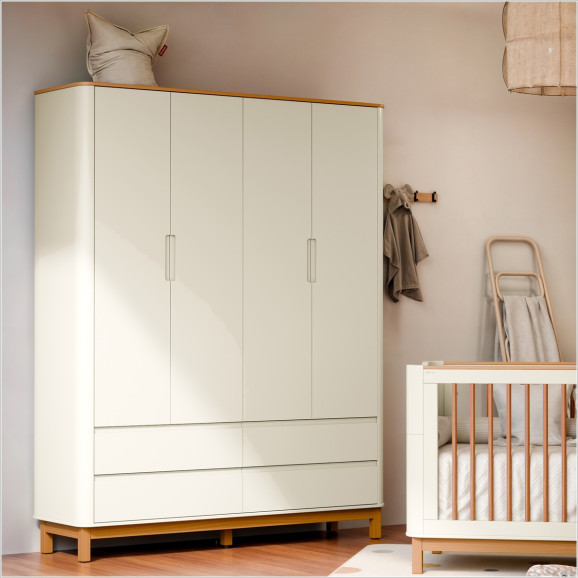 Roupeiro Flow 4 Portas c/ Gavetas 100% MDF Off White Freijó Eco Wood 71225 Matic Móveis