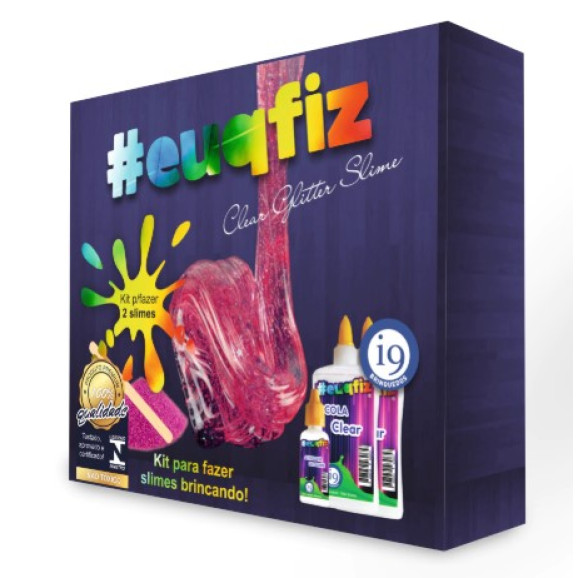 #EUQFIZ Slime Kit 1 Clear Slime Glitter - I9 Brinquedos. Faça incríveis Slimes com seus pais e amigos com esse divertido Conjunto de Slime #euqfiz Kit 1 Clear Slime da i9 Brinquedos. As crianças vão se divertir, desenvolvendo a sua coordenação motora e criatividade! Idade Recomendada: A partir de 8 anos. INMETRO: Em recomendação.